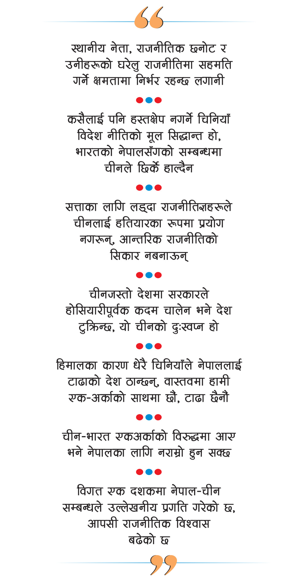 We are not saying that Nepal or any other country should do this. We say and expect something. To be honest, China and India are superpowers in terms of population, territory and growing economies. China also has its own advantages. These two countries have blockaded Nepal geographically. But Nepal is not limited to the periphery but can become a potential hub. Both China and India may offer the most attractive economic opportunities in the world for at least the next three decades. Nepal can enjoy its position if it is careful. Geography is constant, but political geography is variable.