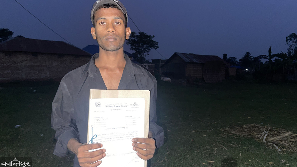 Ramkumar, who has been threatening to demand money back, has not only victimized Sheikh's family. 20-year-old Rupesh Kumar Paswan of Kanchanrup-10 Badgama was also cheated of 350,000 rupees by saying that he would send him to Mauritius. ``Ramkumar, who was known as a villager while living in Kathmandu, stayed in my room for two months,'' Rupesh said, ``At that time, he said that he had a good job as a waiter in a hotel in Mauritius and that there was a salary of one and a half lakh as well as food and accommodation facilities, so I was ready, but first I would get a visa and then I would talk to him at home for money. "I came back when my father (Prabhu) told me to come home with Ramkumar too," he said, "When I came home and talked with Ramkumar and his father (Shyam), my son said that he would send him to Mauritius, so he made him send 3 lakh 50 thousand rupees to Ramkumar's account 4 times." Photo: Vidyanand Ram/Kantipur