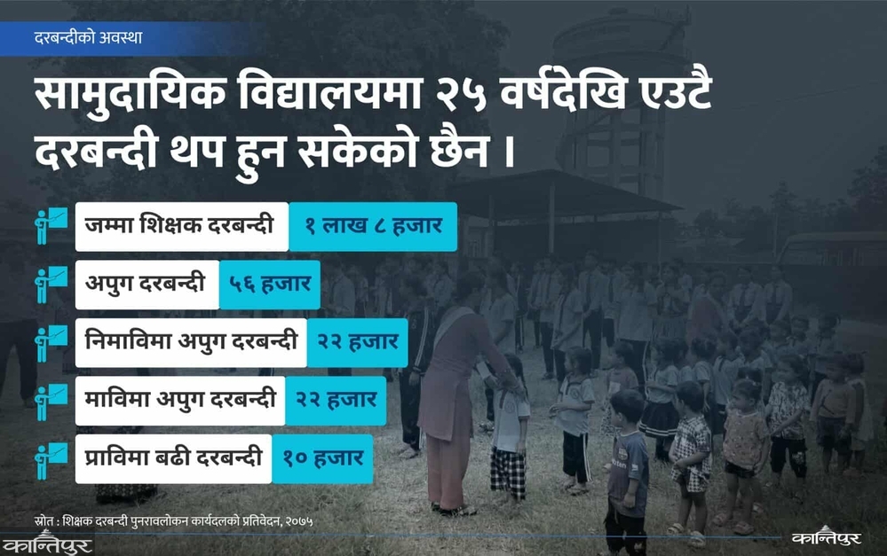 Public schools across the country have not been able to increase a single post for 25 years. Baburam Paudel, the former director general of the education department, said that since 2057, there has been no increase in teacher vacancies and there has been no matching of vacancies. "Since before 2057, there were more vacancies in the hills and urban areas than in the plains and remote areas," he said, "even now the problem is the same."