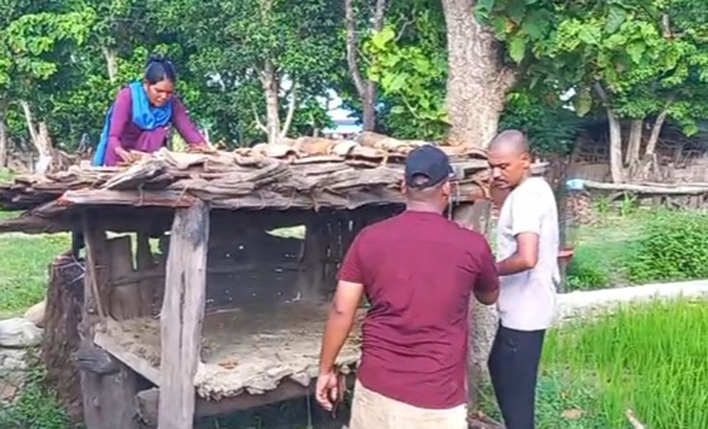 मृतक कमलाको घरसँगै रहेको छाउगोठ शनिबार भत्काइँदै ।