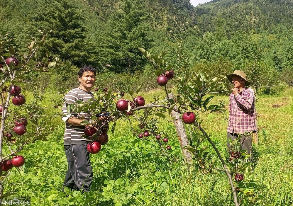 हुम्लाको सिमकोट गाउँपालिका—७ का भीमबहादुर रोकायाले झन्डै ९ रोपनीमा करिब ३ सय स्याउका बिरुवा लगाएका छन् । त्यसमध्ये गत वर्ष उत्पादन दिने २ सय बोटबाट झन्डै ५० क्विन्टल स्याउ फलाए । यो वर्ष सडक मार्गबाट नेपालगन्ज र सुर्खेतमा स्याउ पठाउने तयारीमा रहेका उनी स्याउ टिप्ने तरखरमा छन् । ‘जहाजमा १ सय २० रुपैयाँ प्रतिकिलो भाडा तिरेर बाहिर पठाउन नसकिने,’ उनले भने, ‘अब त गाउँसम्मै सडक जोडियो, स्याउ बेचेर वर्षमा ३/४ लाख कमाउन गाह्रो भएन ।’ सिमकोट—६ का दानबहादुर बुढाले पनि यो वर्ष स्याउ बाहिर पठाउने तयारी गरेका छन् । ७ रोपनीमा झन्डै २ सय ५० स्याउका बोट लगाएका उनको बारीमा एक सय बोटले उत्पादन दिइरहेका छन् । यो वर्ष कम्तीमा ४० क्विन्टल स्याउ बाहिर पठाउने उनको तयारी छ ।