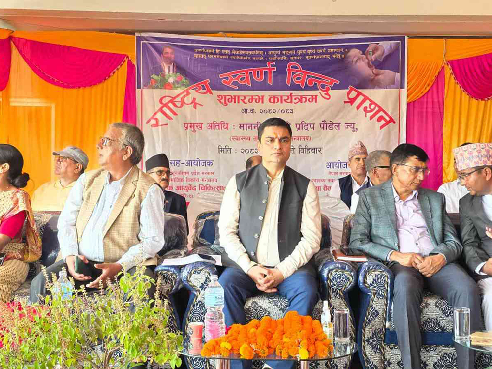 स्वास्थ्य तथा जनसंख्यामन्त्री प्रदिप पौडेलले हालै ‘बालबालिकाका लागि स्वर्णविन्दु प्राशन कार्यक्रम सञ्चालन निर्देशिका, २०८२’ निर्देशिका स्वीकृत गरी धनगढीका एक बालकलाई स्वर्णभस्म खुवाएर ‘स्वर्णविन्दु प्राशन’ कार्यक्रम औपचारिक रूपमा सुरु गरेका थिए । मन्त्रालयले मुलुकभर अभियान चलाउन यस आर्थिक वर्षमा ८० लाख रुपैयाँ बजेट पनि विनियोजन गरेको छ ।