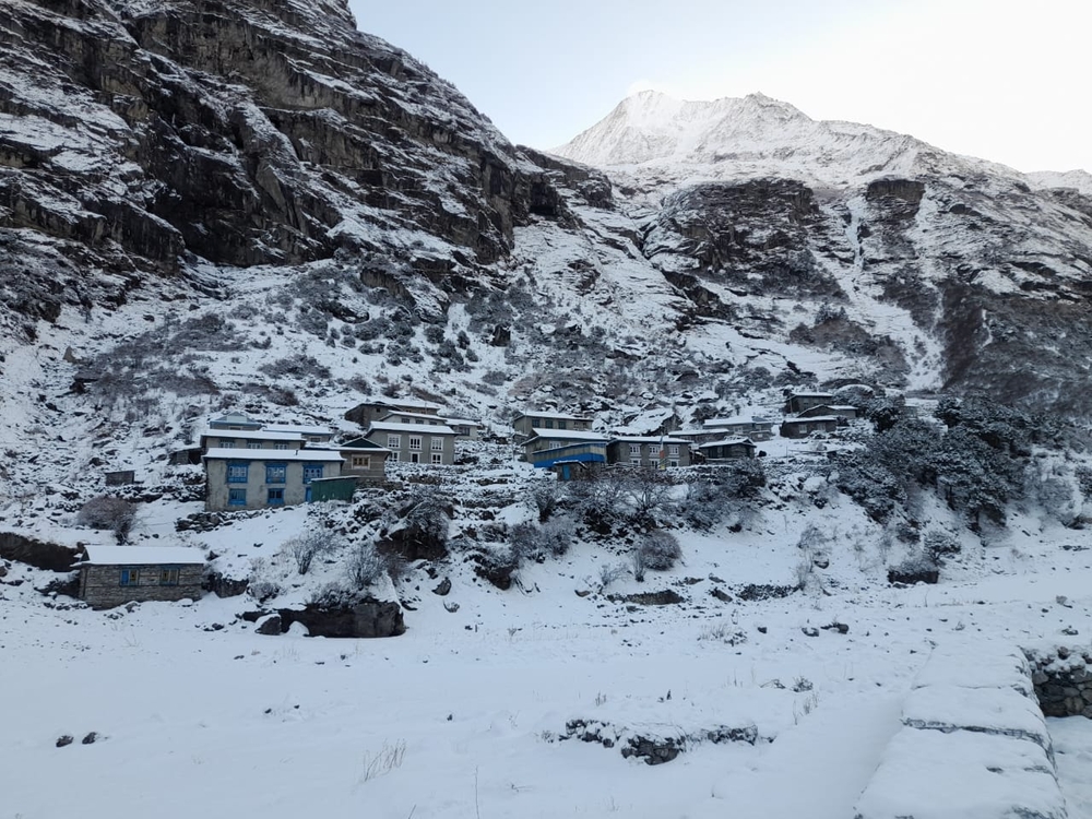 A local Dawachiring Sherpa said that he was staying in Beding to stay in some local hotels. 'This year it snowed after February,' he said, 'In the past, it used to snow from mid-November, we used to close the hotel and go down.' He said that it snowed in Beding on Saturday and Sunday.