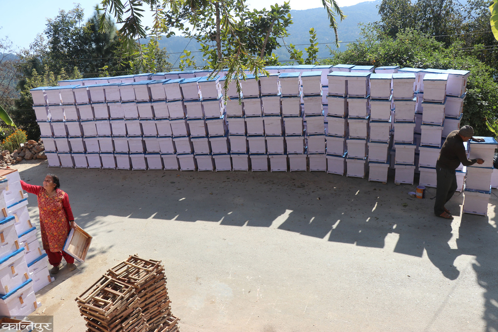 Pashupati Basyal of Bagnaskali Rural Municipality-8, Barangdi of Palpa sells bees and bee-related products and does a business of up to 2 crores annually. Basyal, who is also the owner of Himali Bee Concern, sells honey, beehives, beehives with bees, and bee supplies. They export to more than a dozen districts including Palpa, Gulmi, Rolpa, Rukum, Acham, Gorkha. ``I have been exporting according to where the demand comes from,'' he said, ``but the support of the government mechanism is minimal.'' Retired from Nepal Police, he started beekeeping for 5 years. In the beginning, he started the business by buying 100 beehives for 4 lakhs. Unhealthy competition is going on in the market to sell the produced honey. Therefore, instead of producing honey, I sell hives and shells with bees", he said. He said that the annual turnover is from a minimum of 16 lakhs to a maximum of 29 lakhs.