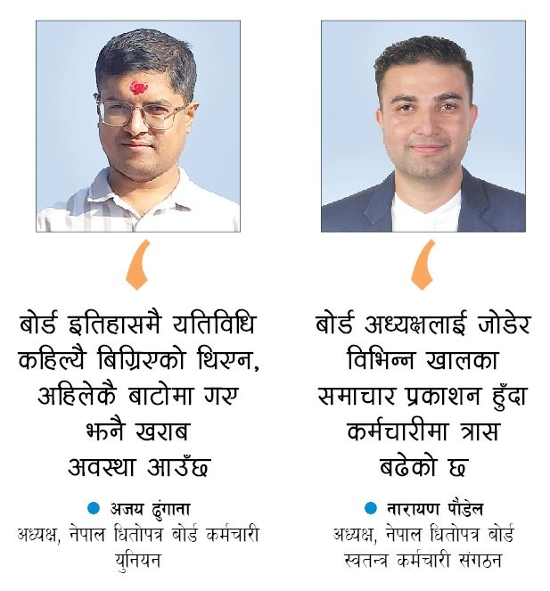 It is a sad matter that the board is held in contempt due to weak physical structure and lack of institutional strengthening. For a long-term solution to this, the necessary steps should be taken from the top leadership level, he said, "In the last few days, the publication of various types of news related to the chairman of the board has created an atmosphere of panic among the employees." Paudel also demanded to enhance the institutional governance by publishing and implementing various study reports related to the capital market and the board. In the