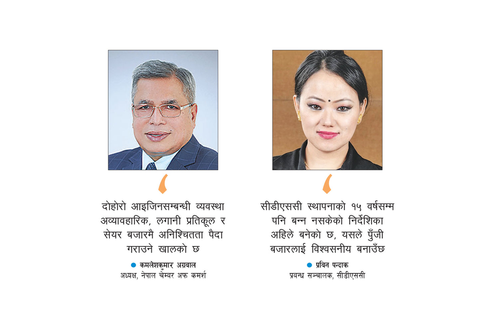 Nepal Chamber of Commerce Chairman Kamlesh Kumar Agarwal said that the proposed dual identity system in the 'Securities Dematerialization Work Guideline 2082' recently released by CDSC is impractical, unfavorable to investment and creates uncertainty in the stock market.