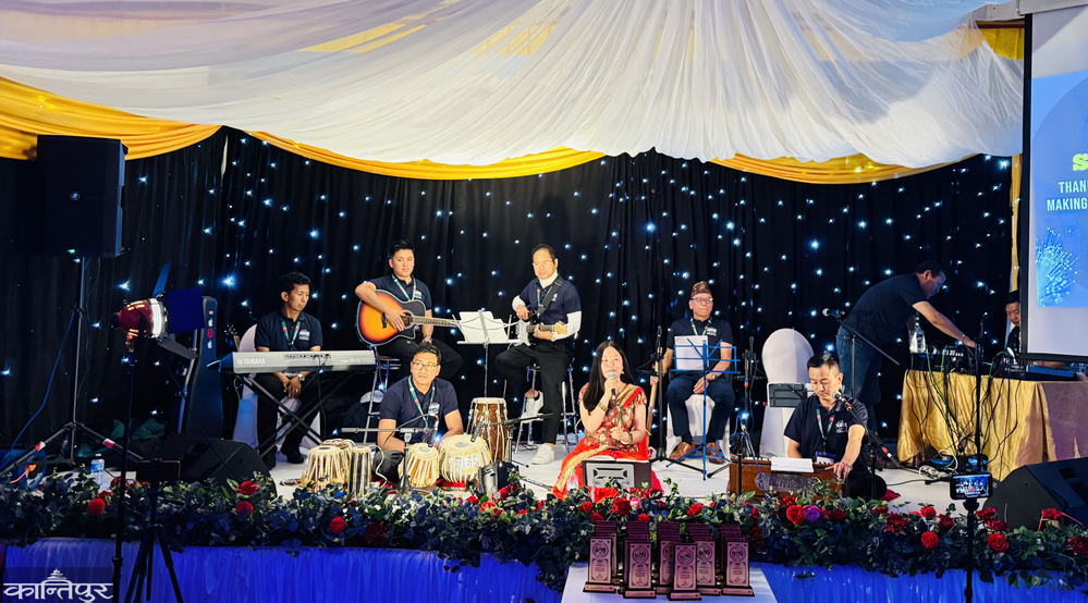 This performance of Pavitra was supported by Kumar Gurung on keyboard, Santosh Rai on rhythm guitar, Sushil Gurung on lead guitar, Tabla and dholak Resham Pache, Min Bahadur Gurung on madal, Dinesh Gurung on flute. Harmonium Sonahang Rai Pavitra is a student of Chandan Kumar Shrestha who is learning music. While Shrestha was giving video greetings, Pavitra burst into tears. Kamaladevi Gurung, former president of NRNA, Surya Gurung and others couldn't hold back their tears, the hall fell silent . The audience in the hall danced to the beats of the DMT band.