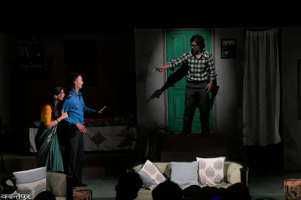 कौशी थिएटरमा मञ्चनरत 'कागताली'ले सम्बन्धका मिहीन आयाम केलाउँदै त्रासदी र हाँसोको मिश्रण प्रस्तुत गरेको छ।