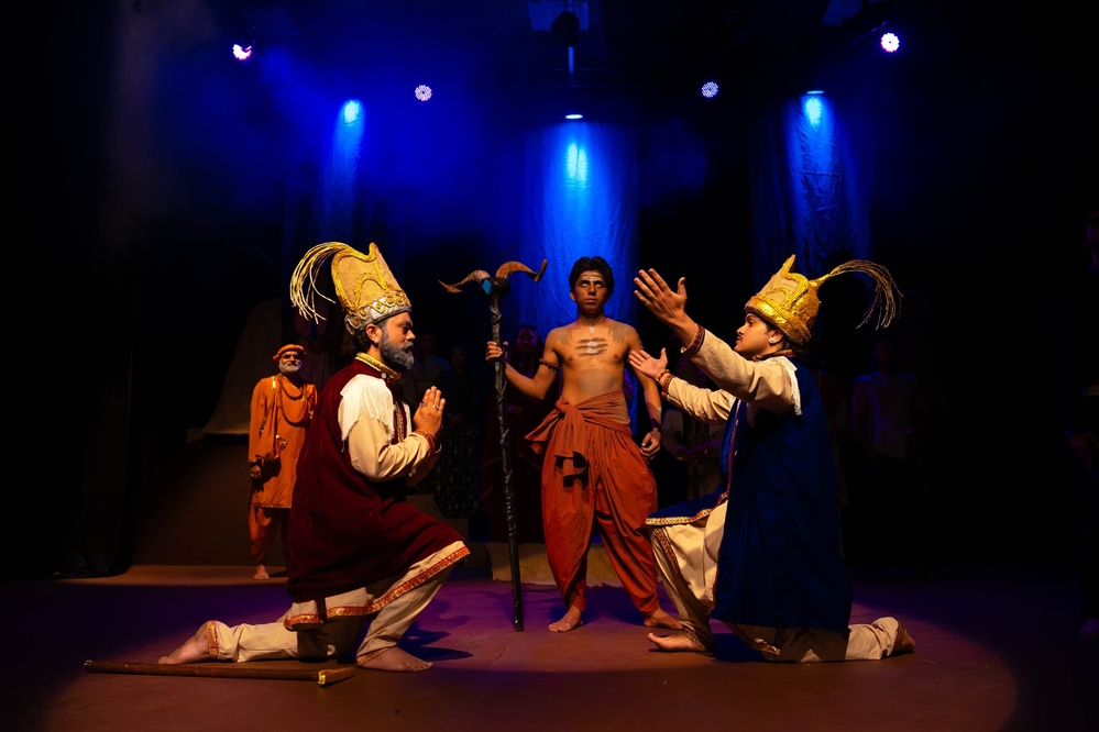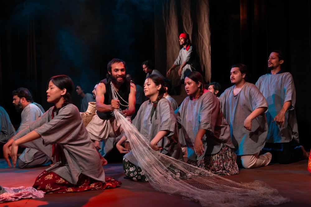'Ekadeshma...' lyrics have been used in an equally sweet way . This play does not have a grand set, but the mythological time is set on stage through simple props. Props also help bring the time, the situation at that time . Especially the Sripech worn by the king or the dress worn by the queen in the palace, the props and costumes have made the drama even stronger .