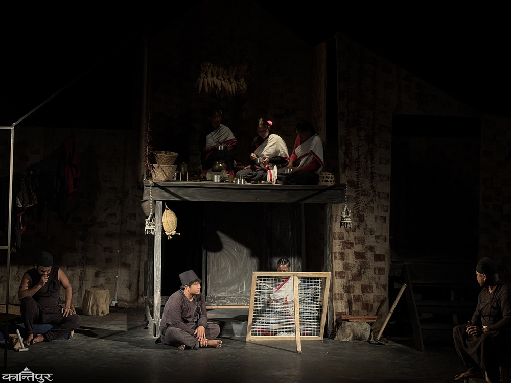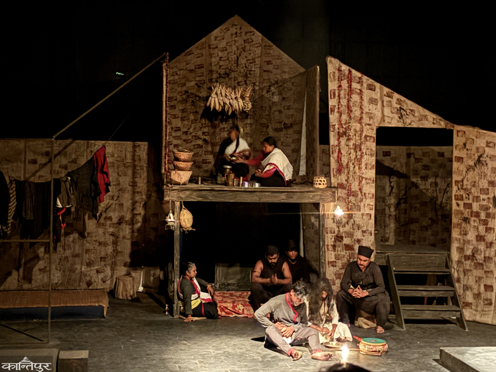 Vikas Parajuli has brought the rural life of seven decades ago, through the stage. The smell of the soil, the shape of the hut, the utensils and the traditional dress take the viewer on a journey to that time.