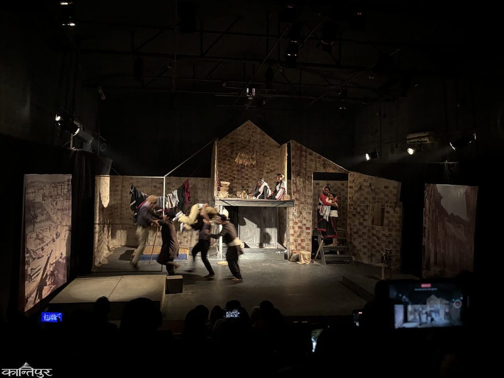 The play presented at the Sushila Koirala theater portrays the Nepali society 70 years ago and brought to life issues such as post-democracy progressive ideas, caste discrimination, superstition and gender inequality through the characters' dialogues and conflicts.