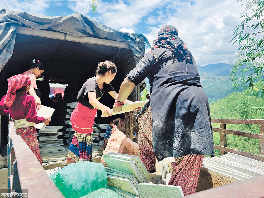 Slate has been extracted from 15 stone quarries of Goiri village located in Chaurjahari-8 of Rukum West for three generations, after the use of slate stone instead of tile and marble, about 100 locals have got employment, the locals say, ”The stone of Goiri has stopped us from Bidesin”.