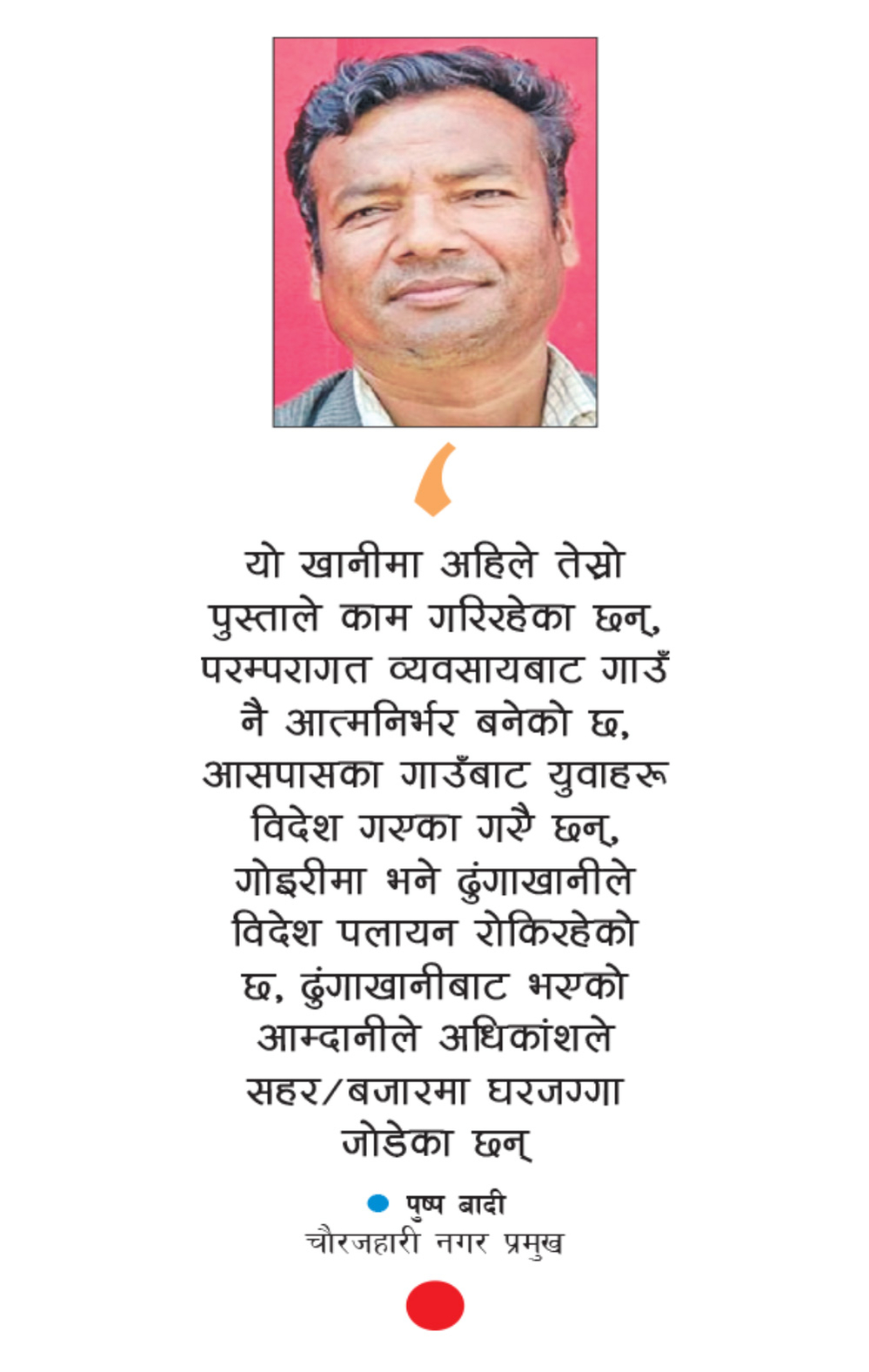 mine this year. Chaurajahari Nagar Chief Pushpa said that the stone quarry in Goiri and Gadhimalika is a major place of employment for the locals. According to him, around 150 people are getting daily employment in both mines.