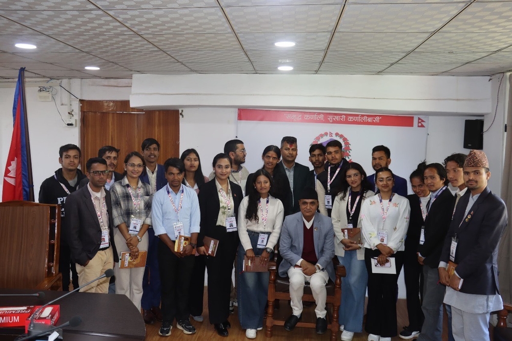नीति र शासनमा युवा कार्यक्रमअन्तर्गत कर्णालीका विभिन्न जिल्लाहरूबाट सहभागी भएका युवाहरूसँग अन्तरक्रिया गर्दै उनले राजनीति नै देशको मूल नीति भएकोले राजनीतिलाई सही ढंगले उपयोग गर्नुपर्ने सुझाव दिए ।