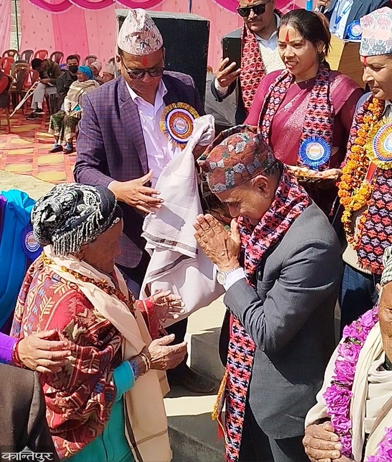 कार्यक्रममा सबै ज्येष्ठ नागरिकलाई कर्णाली प्रदेशका मुख्यमन्त्री यामलाल कँडेल, भौतिक पूर्वाधारमन्त्री शेरबहादुर बुढा, उद्योग, पर्यटन वन तथा वातावरणमन्त्री सुरेश अधिकारी लगायतले दोसल्ला ओढाएर सम्मान गरेका थिए ।