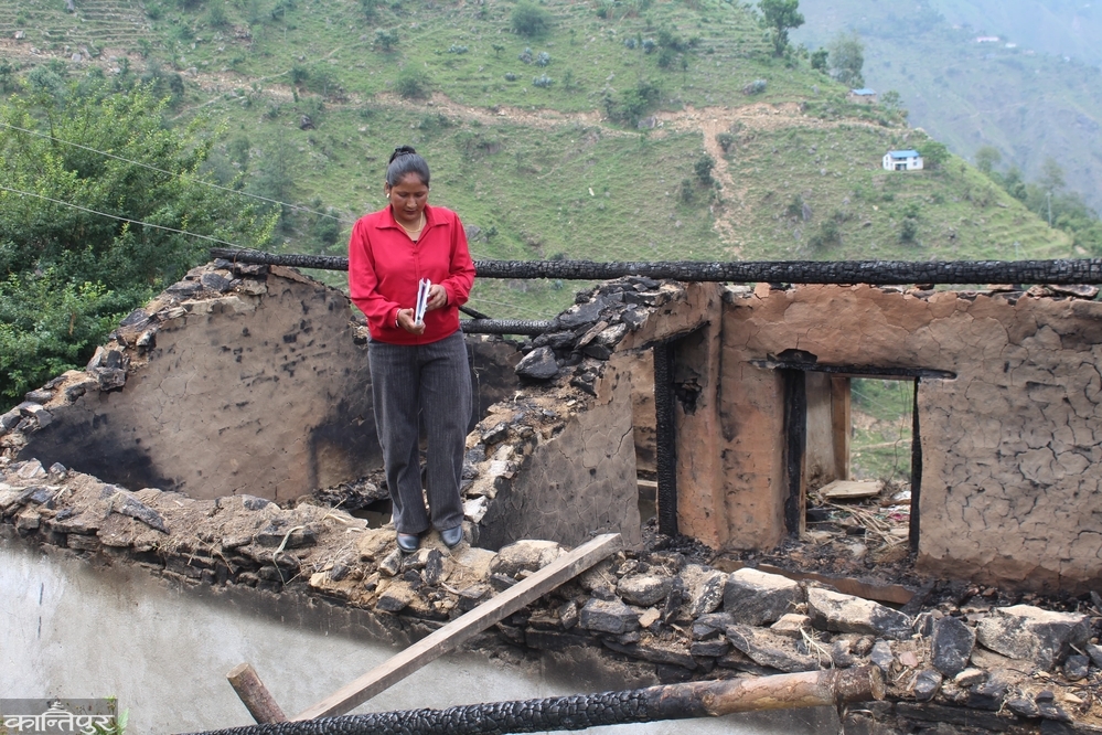 गत शनिबार दिउँसो घरमा आगलागी हुँदा घर, लत्ता कपडा, गरगहना, अन्नपात र १३ घर माहुरी जलेर ८ जनाको परिवारको बिचल्ली भएको थियो ।