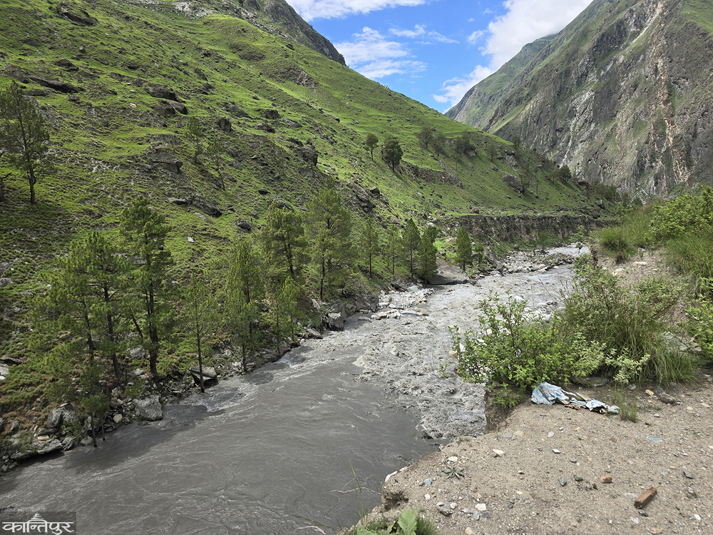 As the stones and mud brought by the river partially blocked the river Bheri, the lower part of the Tripurakot market area, Lonka settlement, the lower part of the famous Shaktipith Tripurasundari temple and the farms of the locals are also at risk.
