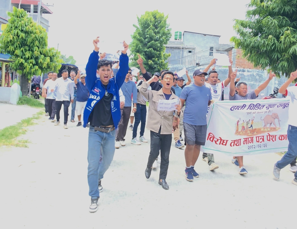 They said that even though hundreds of elephants are coming everyday and causing distress to the locals, the concerned parties and people's representatives are ignoring them. "We have been suffering for years. However, the government is promoting that Bahundang has become elephant-friendly and people and elephants enjoy together. Who will listen to our pain? The victims who came to the city were unanimous. The protest rally which started from Mechinagar-1 Gadagalli, where the wild elephants are terrorizing, reached the city via Bahundangi Bazaar-Bhrikuti-Intabhatta. Meghraj Khadka, a resident of Bahundangi, who arrived in the city, said that the terror of wild elephants, which was under control until a few years ago due to solar fencing, has become the same recently after the solar fencing was damaged. Solar fencing broke today. The battery is disappearing. Instead of showing interest in its management and protection, the government is discussing the elephant corridor," he said. "We cannot sleep at night. Bahundangi knows how persecuted we are. The people of Bahundangi won't be able to sleep comfortably all their lives?'