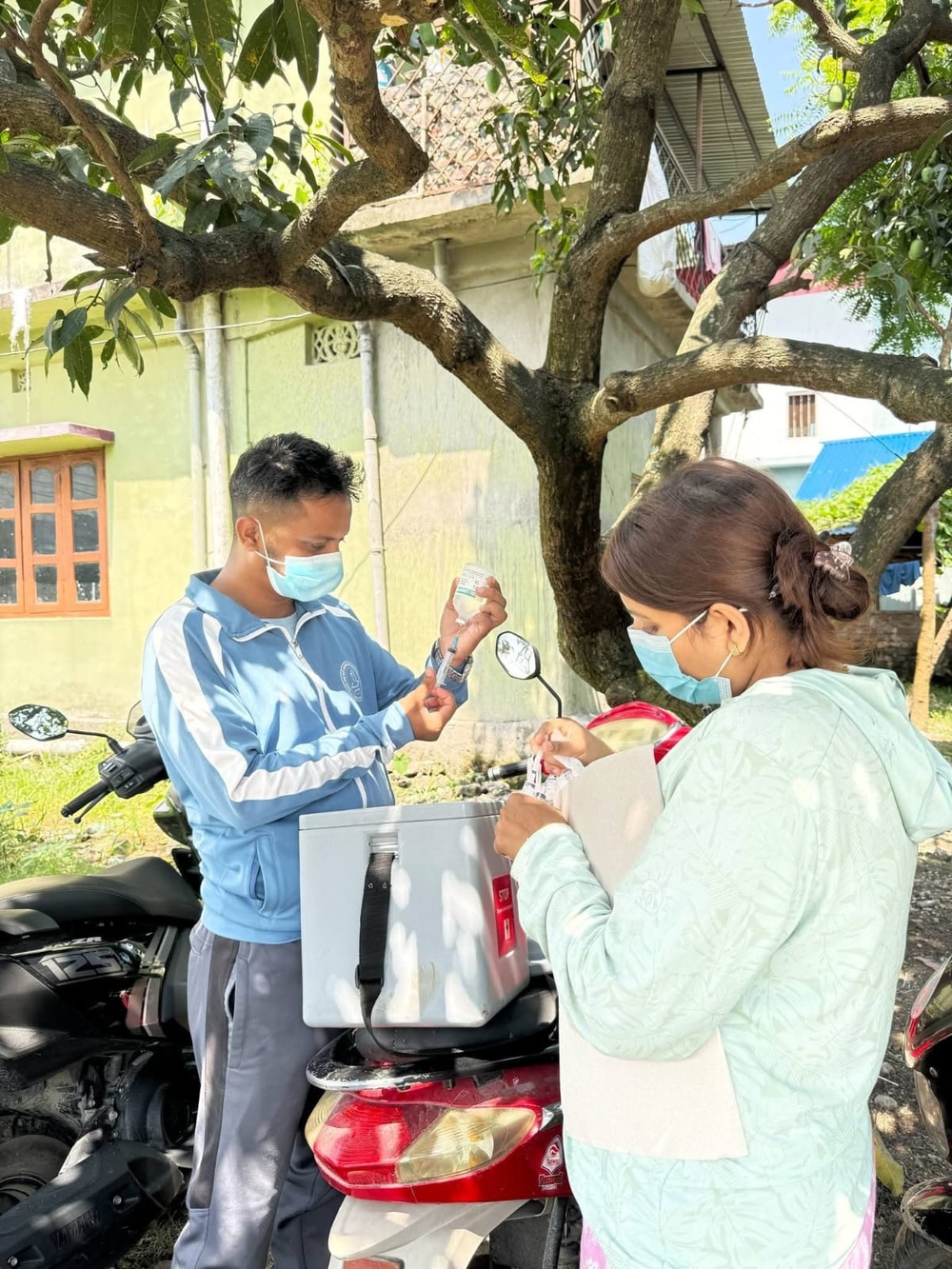 A technician preparing to apply the vaccine. Photo Courtesy: Veterinary Hospital Jhapa