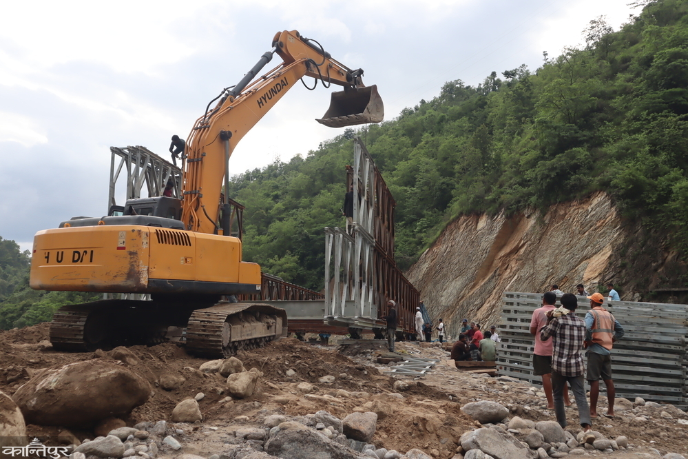 भारतीय प्राविधिकको सहयोगमा पुल जडानको काम तेस्रो पटक भइरहेको हो ।