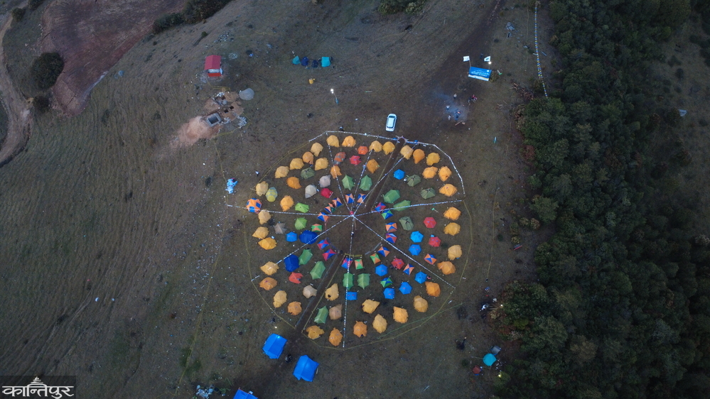 Gauritap was decorated with more than a hundred tents. A campfire was organized along with potato, gundruk and millet liquor while enjoying the cool breeze coming directly from the mountains . Everyone was gossiping to each other and didn't realize the night had passed .