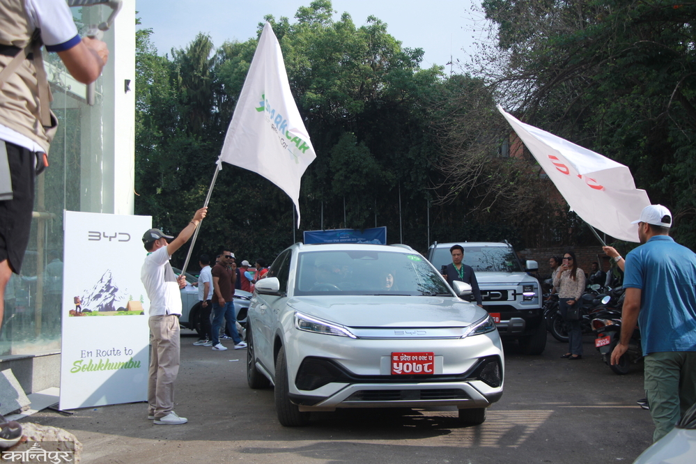 program was- a journey from Garidhara to Gauritap in Solukhumbu. More than 50 electric vehicles of BYD were ready to support the