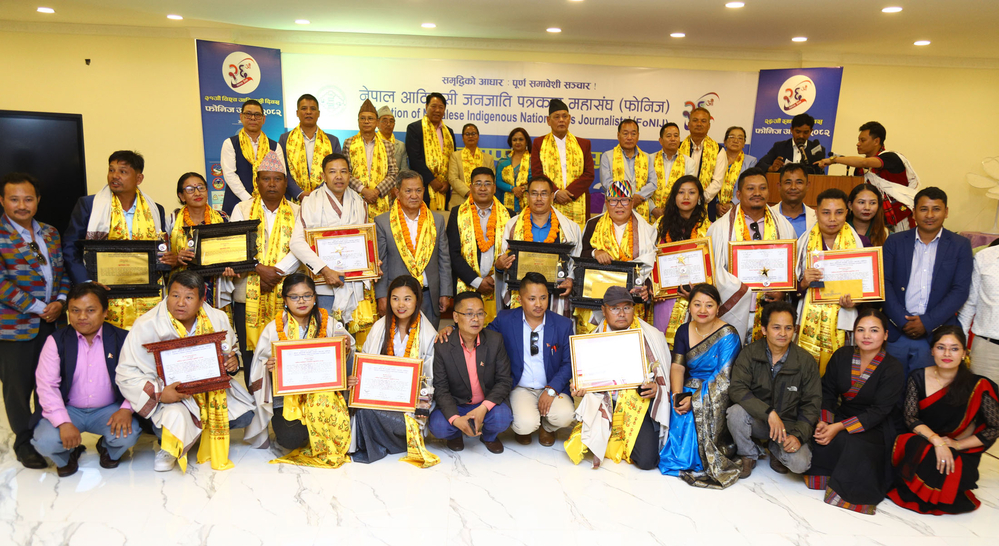 काठमाडौँ — नेपाल आदिवासी जनजाति पत्रकार महासंघ (फोनिज) ले २६ औं स्थापना दिवसको अवसरमा मंगलबार कान्तिपुर दैनिकका लमजुङ संवाददाता आश गुरुङसहित देशभरका १२ जना पत्रकारलाई फोनिज राष्ट्रिय अवार्ड २०८२ प्रदान गरेको छ ।