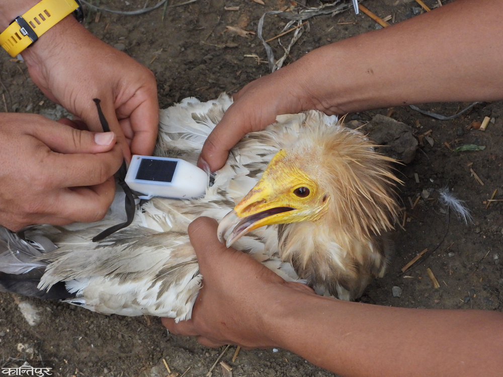 For the first time in Nepal and India, white vultures have been tagged to find out about the distance they travel in search of food, breeding places and migration conditions and challenges. Bhusal said that the tags were caught and tagged using leg hole traps with permission from the National Parks and Wildlife Department. A satellite tag worth 2 lakhs is 30 grams. The data comes in two hours from the satellite connection. All the data about how high and fast it is flying can be found from this,' he said, 'The study is easy as the information about whether the battery is working/not charging/is not charging.'
