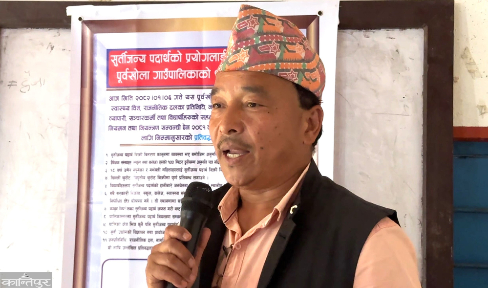 पूर्वखोला गाउँपालिकाले सुर्तीजन्य पदार्थ नियन्त्रण तथा नियमन गर्न छुट्टै ऐन बनाएको र कार्यान्वयनका लागि बहुपक्षीय अन्तरक्रियाबाट प्रतिबद्धता जनाइएको गाउँपालिका अध्यक्ष नुनबहादुर थापाले बताए । सुर्तीजन्य पदार्थ मानव स्वास्थ्यका लागि हानिकारक भएकाले यसको प्रयोगलाई नियन्त्रण गर्न गाउँपालिकाले सुर्तीजन्य पदार्थ (नियन्त्रण तथा नियमन) सम्बन्धी ऐन–२०८१ जारी गरेकाले कार्यान्वयनका लागि प्रतिबद्धताले सहयोग पुग्ने गाउँपालिका अध्यक्ष थापाले बताए । ‘ऐन जारी भयो तर कार्यान्वयनको चरणमा पुगिएको थिएन,’ उनले भने, ‘त्यसैका लागि सबै वडाबाट सहभागी गराएर छलफल तथा अन्तरक्रिया र प्रतिबद्धता जनाइएको हो ।’