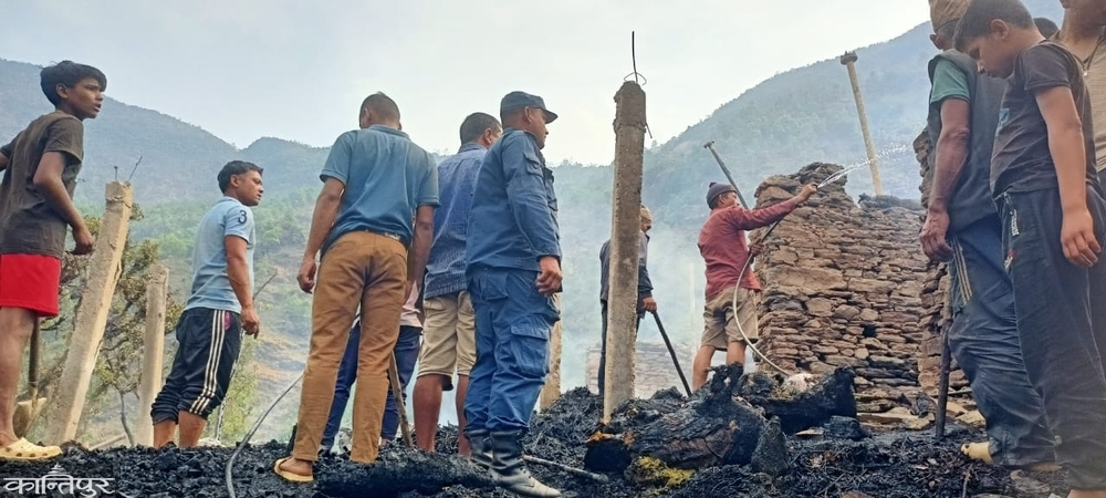Tul Bahadur Gharti of Malika Rural Municipality Ward No. 8 Marvung Kilibang of the district caught fire when water was heated in the raw cow shed, and the goat cage that was close to the cow shed was also damaged.