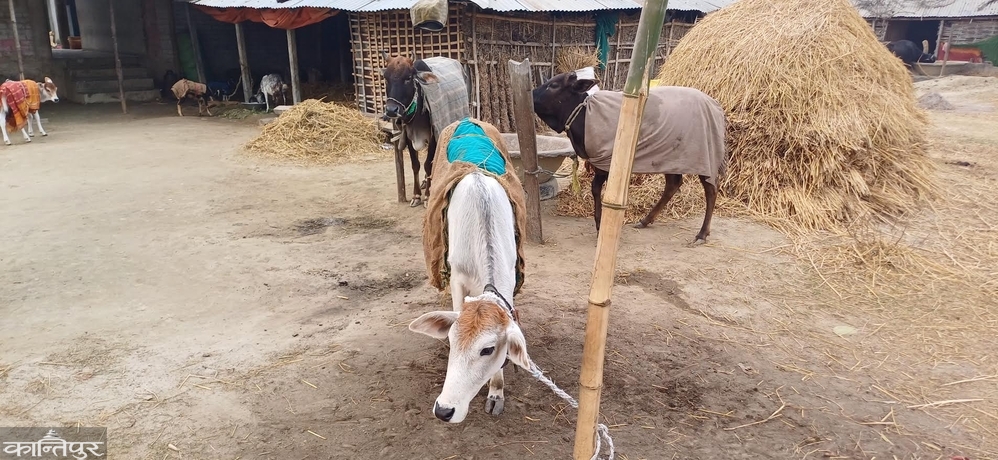 Since Tuesday morning, since the weather has changed and become extremely cold, animals and cattle are also in trouble due to the cold wave. Animal quadrupeds In order to protect cattle from the winter by keeping them warm by covering them with thick cloths in the cowsheds (Guhali) and in the doorways, they have also started burning ghur in rural areas.
