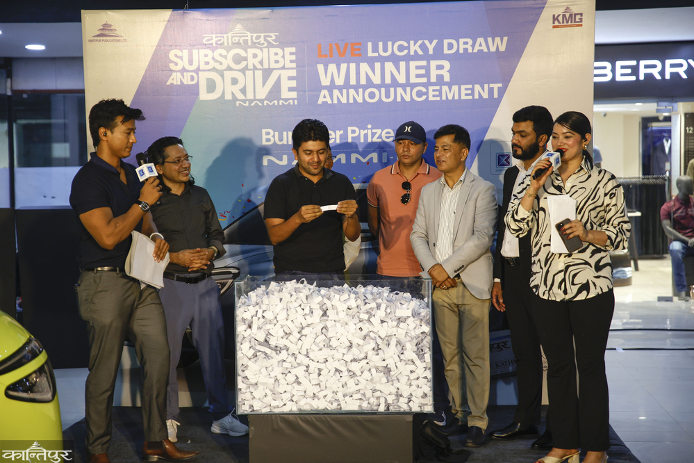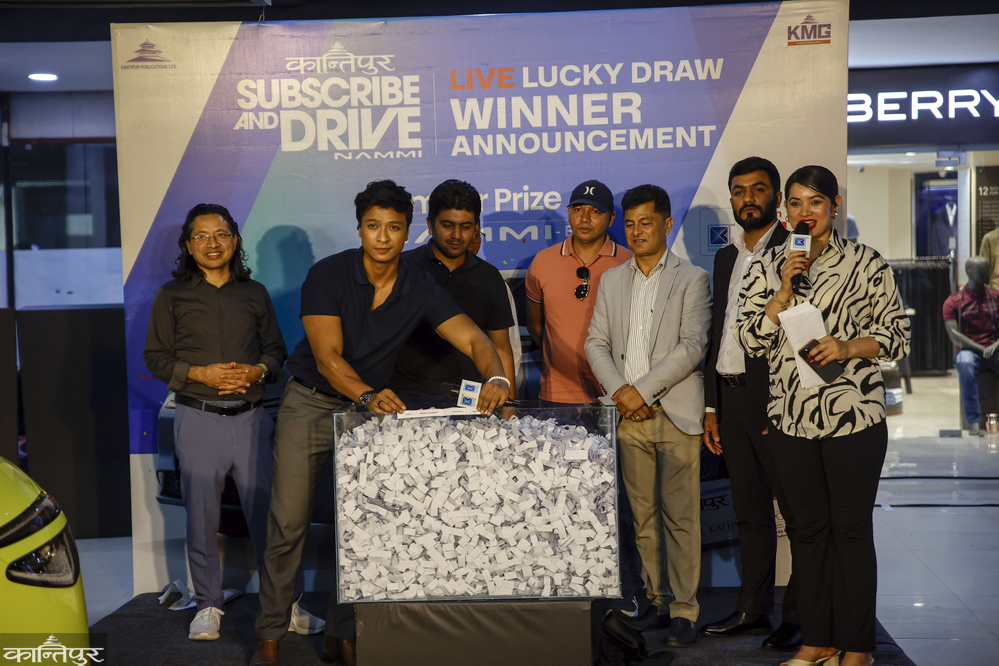 काठमाडौँ — काठमाडौं पोस्ट र कान्तिपुर दैनिकको वार्षिक ग्राहक योजना 'कान्तिपुर सस्क्राइब्स एन्ड ड्राइभ नामी' योजनाअन्तर्गत स्युचाटारका गौरव नगरकोटीले नामी कार जितेका छन् ।