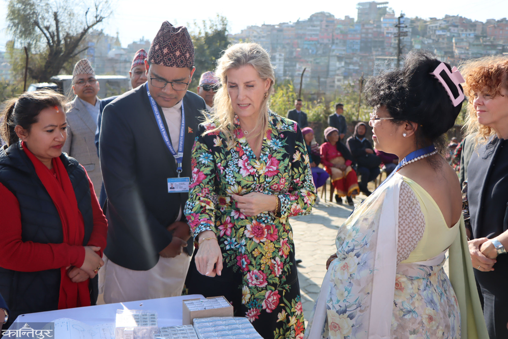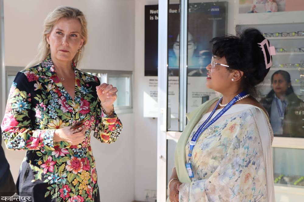 काठमाडौँ — नेपाल भ्रमणमा रहेकी बेलायतका अधिराजकुमारी डचेस सोफीले बुधबार कीर्तिपुरस्थित 'कीर्तिपुर आँखा अस्पताल'को अवलोकन र सेवाग्राहीसँग भेटघाट गरेकी छिन् । नेपाल नेत्रज्योति संघद्वारा सञ्चालित कीर्तिपुर आँखा अस्पतालले २०७४ देखि सेवा दिँदै आएको छ ।