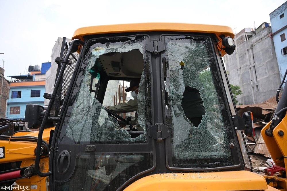 उक्त स्थानमा डोजर लगाएर हटाउने क्रममा दुई मजदुरले विरोधस्वरूप ढुङ्गामुढा गरेका थिए। ढुङ्गाले डोजरको सिसा फुटेको र ढुङ्गामुढा गर्ने दुई जनालाई नियन्त्रणमा लिएको उपरीक्षक अर्यालले जानकारी दिए।