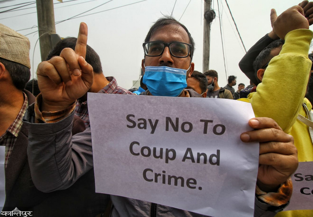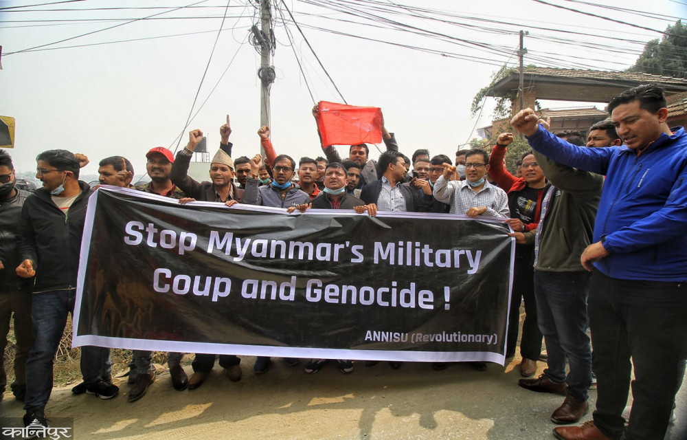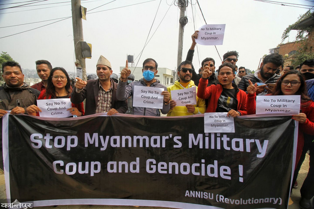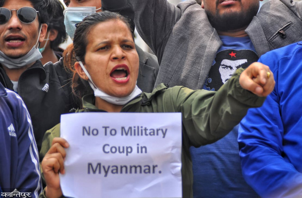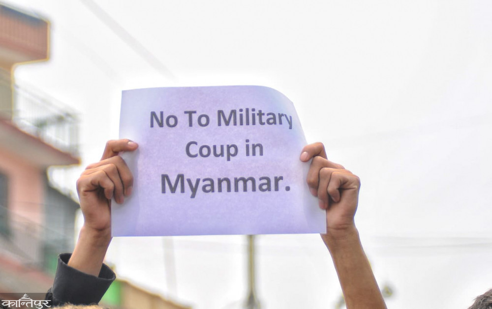 सैनिक ‘कू’ भएकै दिन माघ १९ गते नेपालले विज्ञप्ति जारी गर्दै बन्दी बनाइएका राष्ट्रपति विन मिन्ट, नेत्री आङ सान सुचीसहितका नेताहरूको अविलम्ब रिहाइको माग गरेको थियो । त्यसपछि म्यानमार घटनालाई लिएर नेपाल बोलेको छैन ।
