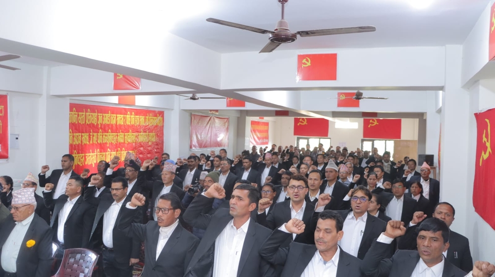 The leader Sudarshan Mongol said that the uniforms sewn from the garments established at the Shivgarhi central office were provided. "We are wearing clothes produced in our own garment so that the uniform of the leaders can be seen," he said. Mangal said that the party has also established another garment in Kapurdhara of Kathmandu and is sewing coats, pants, shirts and track suits needed by party leaders and workers.