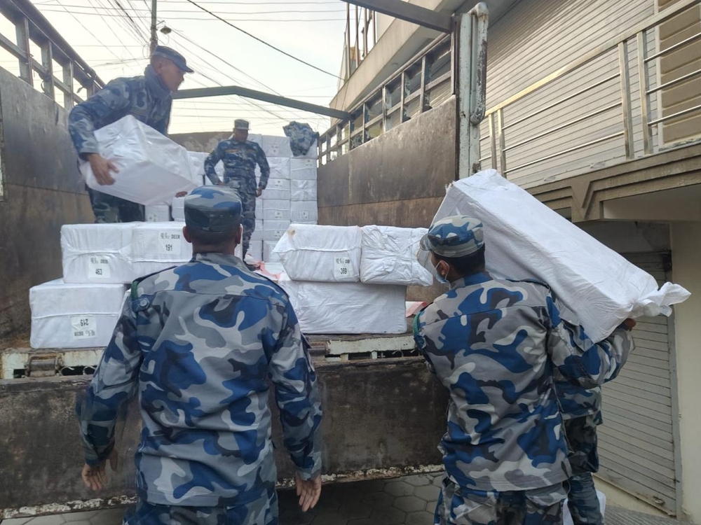 Revenue investigation department raided and seized the vape from a warehouse in Imadol and kept it in a truck . Photo: Revenue Research Department