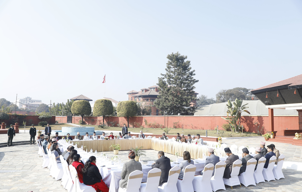 काठमाडौँ — माघी एवं माघे संक्रान्तिका अवसरमा राष्ट्रपति भवन शीतल निवासमा शुभकामना आदानप्रदान कार्यक्रम आयोजना गरिएको छ । शुभकामना आदानप्रदान कार्यक्रममा उपराष्ट्रपति रामसहायप्रसाद यादव, प्रधानमन्त्री केपी शर्मा ओली, सभामुख देवराज घिमिरे, राष्ट्रिय सभाका अध्यक्ष नारायण दाहाल, पूर्वराष्ट्रपतिद्वय रामवरण यादव र विद्यादेवी भण्डारी उपस्थित छन् ।