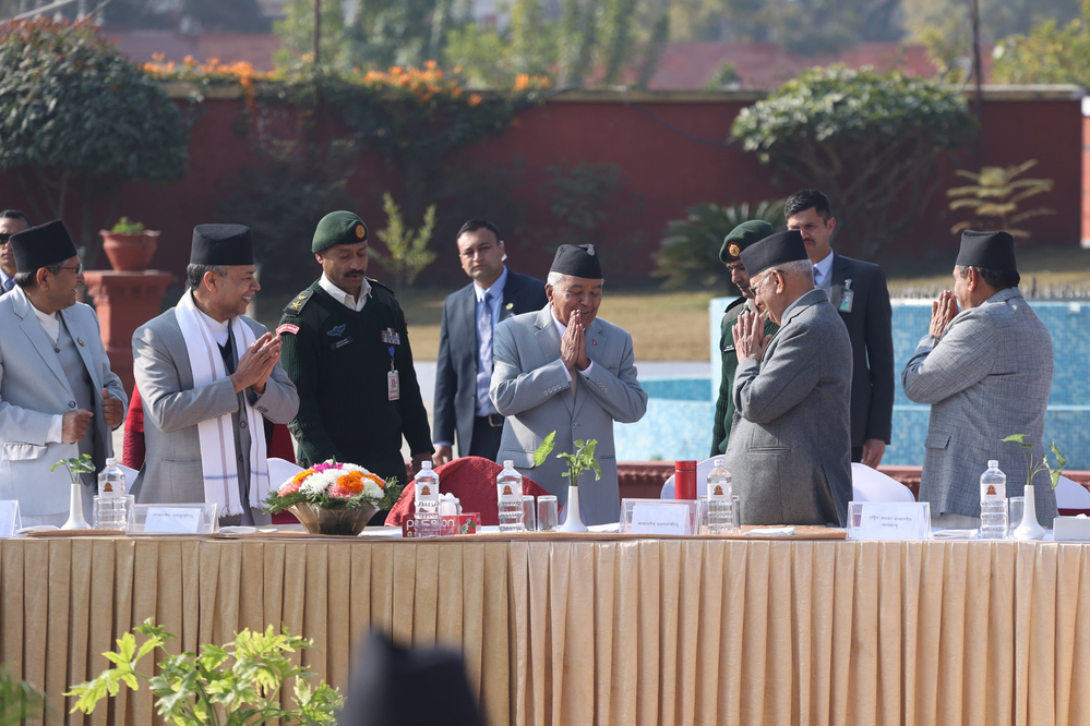 त्यस्तै कांग्रेस सभापति एवं पूर्वप्रधानमन्त्री शेरबहादुर देउवा, नेकपा एसका अध्यक्ष एवं पूर्वप्रधानमन्त्री माधव नेपाल, पूर्वप्रधानमन्त्री झलनाथ खनाल, जनता समाजवादी पार्टी नेपालका अध्यक्ष उपेन्द्र यादव, नागरिक उन्मुक्ति पार्टीका अध्यक्ष रञ्जिता श्रेष्ठलगायतको उपस्थिति थियो ।