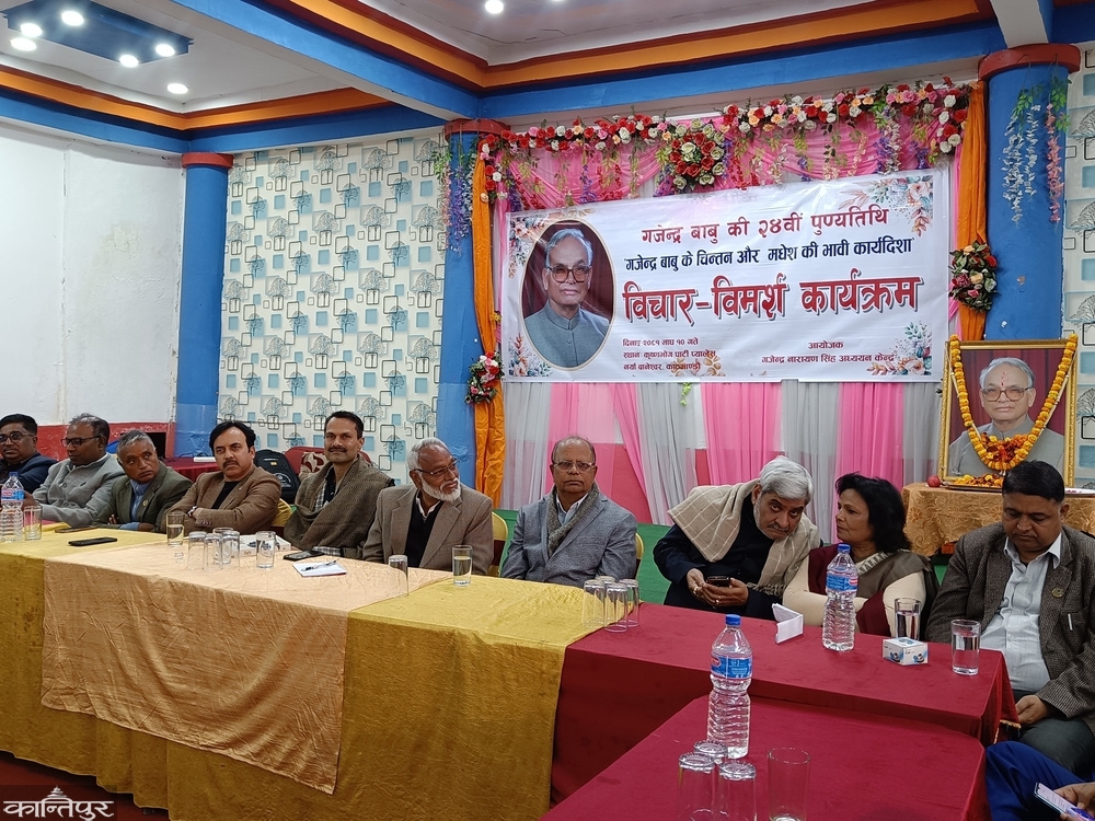 काठमाडौँ — मधेशवादी दलका नेताहरूले ‘मधेशवाद’ का प्रवर्द्धक स्व.गजेन्द्रनारायण सिंहलाई उनको २४ औं स्मृति दिवसमा स्मरण गरेका छन् । गजेन्द्रनारायण सिंह अध्ययन केन्द्रले उनको स्मृति दिवसमा बिहीबार आयोजना गरेको कार्यक्रममा नेताहरूले दूरदर्शी र परिवर्तन चाहने नेताका रूपमा स्मरण गरेका छन् ।