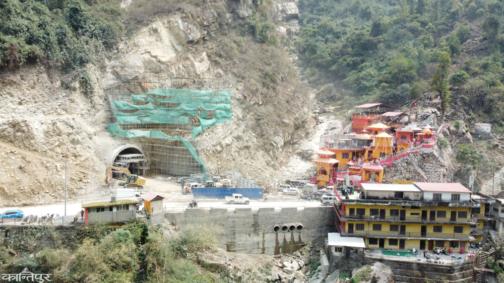project, a 2-lane main tunnel with a length of 1,089 meters has been constructed, said Project Chief Krishnaraj Adhikari. He said that the width of its main tunnel will be 10 and a half meters and the height will be about 7 meters. The total length of this tunnel including lining will be 1 thousand 126 meters .