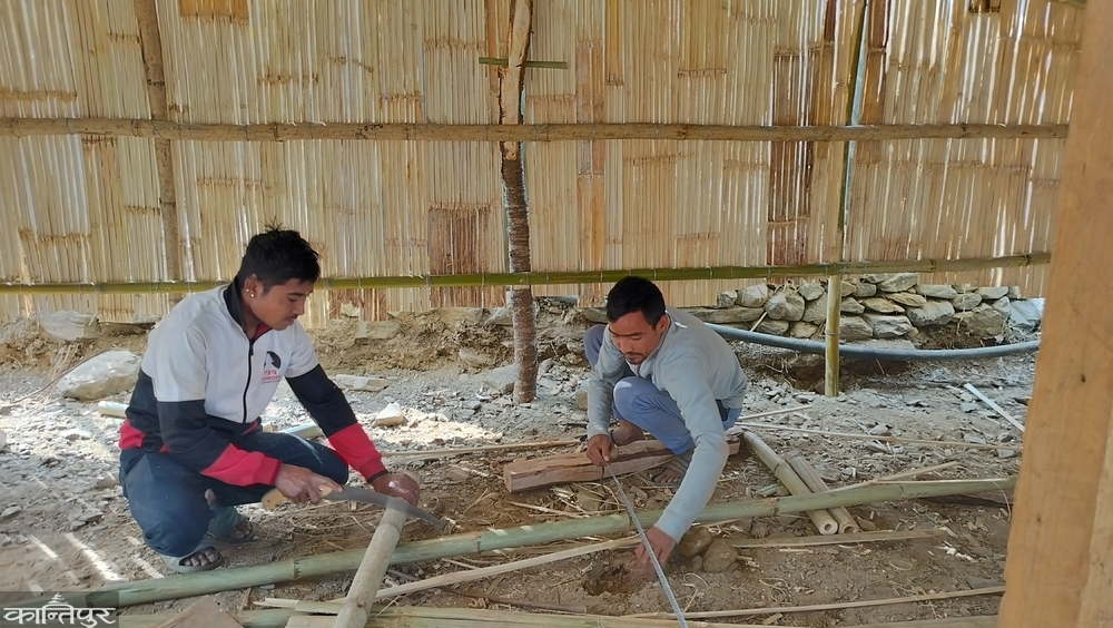 नारायणटारका योगल श्रेष्ठ नापोअनुसार बाँसलाई करौतीले काट्दै छन् । श्रेष्ठका दाजुभाइ बाँस र जस्तापाताले अस्थायी टहरा बनाउने तयारी गरिरहेका छन् । बाढीले घर पूर्णरूपमा क्षति भएपछि महिनौं दिन अरूकहाँ बसेको उनको परिवारले अहिले अस्थायी टहरा बनाइरहेको हो । ‘सधैं अरूको सहारामा बसेर पनि भएन,’ उनले भने, ‘सहयोगमा बाँस, जस्तापाता, किला, काँटालगायत सामग्री पाएँ, टहरा बनाउने सीप भएकाले आफैंले बनाउन सुरु गरें ।’