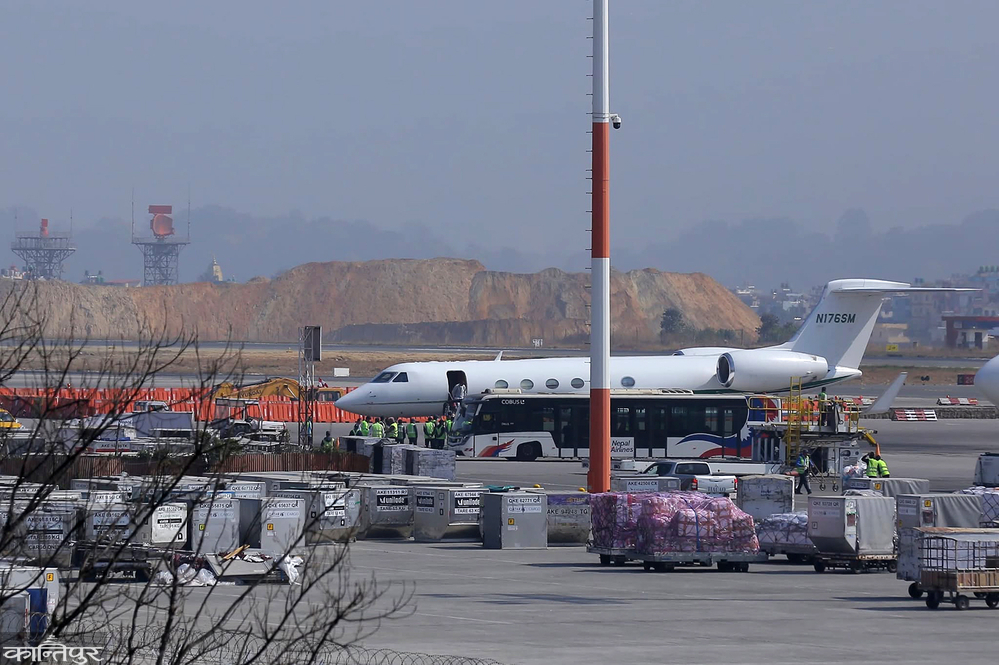 नागरिक उड्डयन प्राधिकरणका सहप्रवक्ता ज्ञानेन्द्र भुलका अनुसार सात जना पुरुष र एक जना महिला बोकेर आएको अमेरिकी वायुसेवा कम्पनी ग्रिफोन एयरको जहाज गल्फजेटस्ट्रिम बिहान ९ बजेर ५३ मिनेटमा त्रिभुवन अन्तर्राष्ट्रिय विमानस्थलमा अवतरण गरेको हो ।
