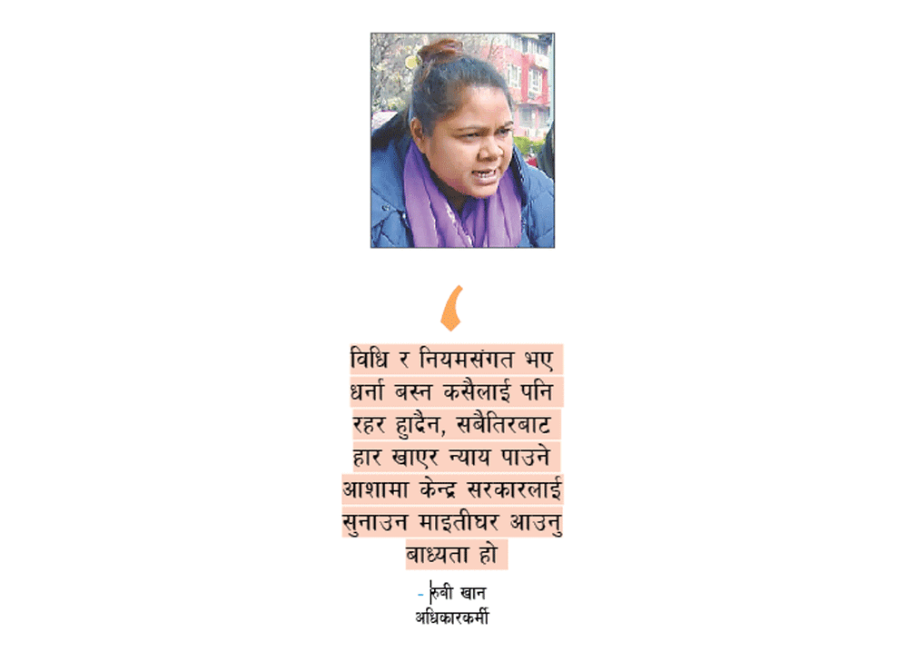 Ruby Khan, a human rights activist from Nepalganj, says that it is a sad matter to come to Kathmandu for justice in such a serious matter. "If the rules and regulations are followed, no one would want to hold a sit-in," she adds, "When the local government and the state government do not listen, it is compulsory to come to Maitighar to inform the central government in the hope of getting justice." However, after the demand was not fulfilled, on August 13, 2078, a group of women came to Kathmandu on foot. In the meantime, they came to Kathmandu 5 times and sit dharna for justice. After their program with a sit-in centered in Kathmandu, the Ministry of Home Affairs is working by forming an inquiry committee. The mother-in-law's voice tells Khan that the case is in the process of reaching the court. Although the constitution has given us full rights, he believes that there is a problem when local power and authority are concentrated in the central government.