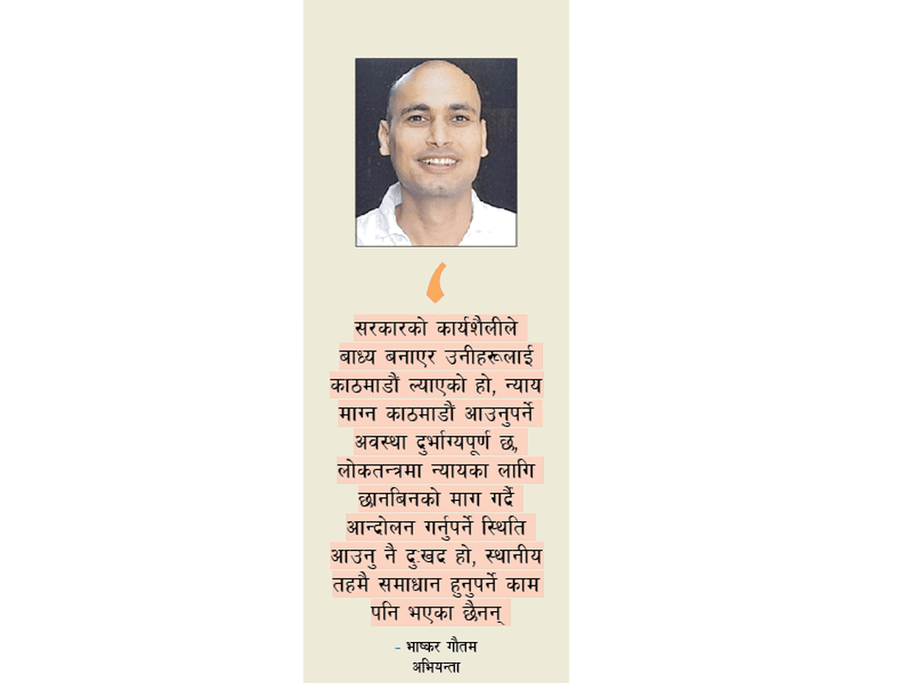 "Government forced them to come to Kathmandu," Gautam said, "The situation of having to come to Kathmandu to seek justice is unfortunate. It is a sad thing to come to a situation where we have to protest for justice in a democracy. People don't come here by desire. Even the natural problems that need to be solved at the district level have not been done.'