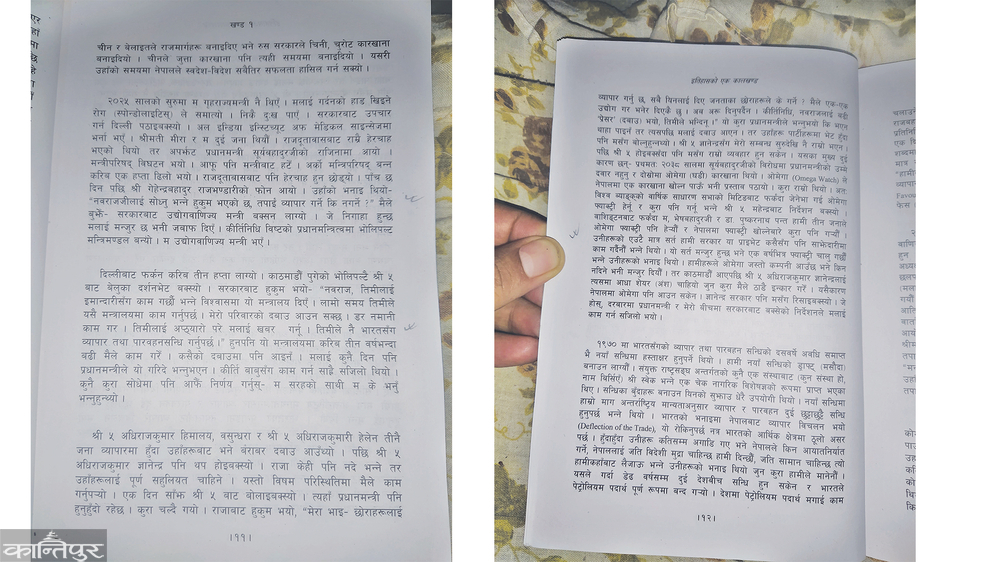 Subedi has already disclosed that Omega, the world-famous watchmaker of Switzerland, wanted to open a factory in Nepal at that time, but after Gyanendra sought a half share, Omega's arrival was stopped. Due to the same reason, the relationship between them, which had deteriorated, has now improved dramatically. But the memoir written by Subedi in his autobiography book 'Ek Kalkhand of History' is alive. On pages 11 and 12 of the book, Subedi has written: