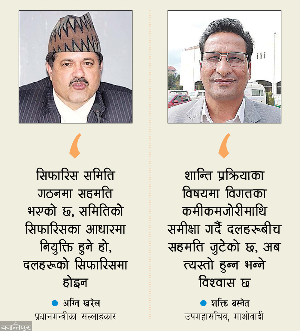 Maoist leader Shakti Basnet claimed that even though officials could not be selected due to differences of opinion among the members of the recommendation committee, such a situation will not be repeated. The members of the previous committee did not agree. It was natural that there was an opinion among the major parties that going to the minority and the majority on issues like the peace process would not be beneficial in the long run. That's why it was stopped at that time," said Basnet, "Now, a consensus has been reached after reviewing the shortcomings of the past. I believe that will not be the case now.'