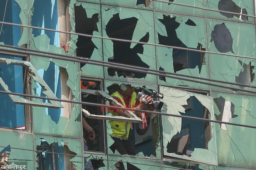 According to him, when Suresh and Anil reached there, the royalist protestors were just gathering. After reporting for 30 minutes, they went inside the alley next to the fire building to drink tea with their friends. It was reported that the police fired tear gas while the protestors were demonstrating . "Departing from the street, the protestors were trying to throw stones because the police threw tear gas from above. After we got out on the street, we were stung by tear gas . Dai handed over the camera to me to join the police team. And went ahead . "Dai did it live from the mobile phone," says Anil, "After a while, Dai and I met again at the previous tea shop." They reached the front of the building taking pictures. Suddenly the crowd swelled and became excited . The protestors broke the key of the shutter to enter the building and started entering. After that, Dae Bum handed me over and entered Swattai . I couldn't say anything . My brother was sitting on the second floor watching the film. Stone pelting was going on . At that time, the protestors were saying that they should be set on fire,' says Anil, 'they were sweeping the goods from above. Tear gas was fired again. I was also on one side . The protestors dispersed. According to