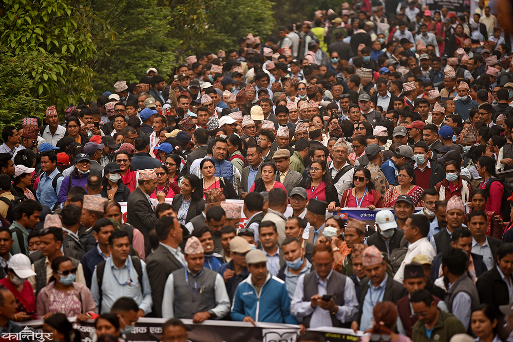 संविधानअनुसार माध्यमिक शिक्षासम्मको एकल अधिकार स्थानीय तहमा हुने व्यवस्थाविपरीत शिक्षक दरबन्दी संघमा रहनुपर्ने अदृश्य माग राखेर शिक्षक काठमाडौं केन्द्रित सडक आन्दोलनमा