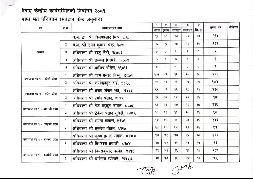 कोसी प्रदेशका झापा, इलाम, धनकुटा र उदयपुर तथा मधेश प्रदेशको सिरहा जिल्लाको मतगणना सकिँदा मिश्रले २ सय १५ मत प्राप्त गरेका छन् ।